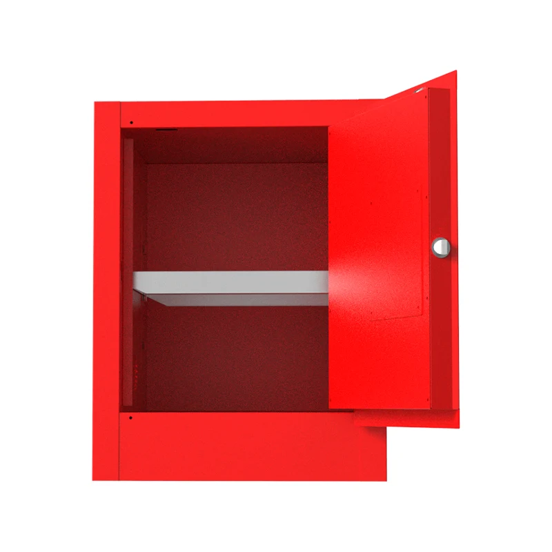 எரியக்கூடிய இரசாயன பாதுகாப்பு சேமிப்பு அமைச்சரவை இரட்டை அடுக்கு எஃகு தகடு அமைப்புடன் கட்டப்பட்டுள்ளது, இது அமைச்சரவை உடலின் வலிமை மற்றும் நிலைத்தன்மையை பெரிதும் மேம்படுத்துகிறது. தொழில்துறை உற்பத்தியில், அடிக்கடி கையாளுதல் மற்றும் மோதல்களை எதிர்கொள்ளும் போது, அது உள்ளே சேமிக்கப்படும் எரியக்கூடிய இரசாயனங்களுக்கு நம்பகமான உடல் பாதுகாப்பை வழங்க முடியும், அமைச்சரவை சேதம் காரணமாக எரியக்கூடிய பொருட்களின் கசிவு காரணமாக ஏற்படும் அபாயங்களை தடுக்கிறது. இது இரசாயன மூலப்பொருட்கள் கிடங்குகள் போன்ற இடங்களுக்கு ஏற்றது.