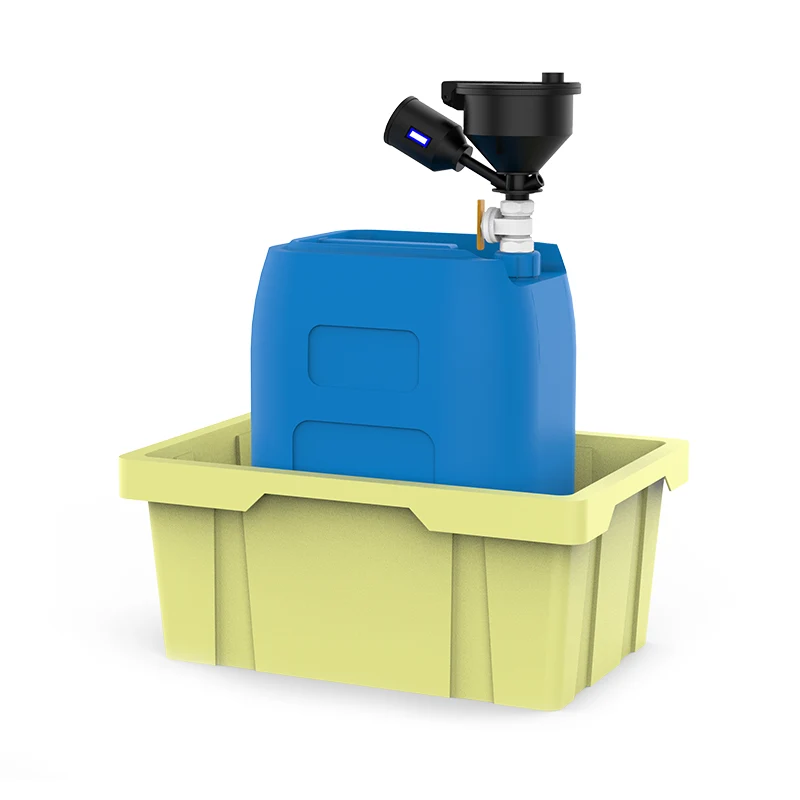 கழிவு திரவ சேகரிப்பு அமைப்பில் நிலையான மிதவை நிலை காட்டி மற்றும் ஆன்டி-ஸ்டேடிக் கிரவுண்டிங் கிளிப் பொருத்தப்பட்டுள்ளது.
