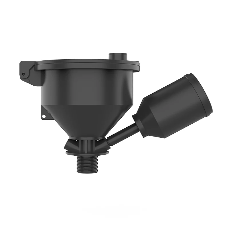 புனலின் உள் விட்டம் 130 மிமீ மற்றும் வெளிப்புற விட்டம் 158 மிமீ ஆகும். இது கசிவு இல்லாத மேல் அட்டையின் வடிவமைப்பை ஏற்றுக்கொள்கிறது. மூலப்பொருட்கள் இறக்குமதி செய்யப்பட்ட ஆன்டி-ஸ்டாடிக் பொருட்களிலிருந்து உட்செலுத்தப்பட்டவை, சீல் கவர் மற்றும் ஸ்பிளாஸ்-ப்ரூஃப் ஃபில்டர் ஃபனல் வடிவமைப்பு ஆகியவற்றைக் கொண்டுள்ளன. சீல் செய்யப்பட்ட கழிவு திரவத்தின் பாதுகாப்பை உறுதி செய்வதற்காக புனலுக்கு கீழே ஒரு வால்வை விருப்பமாக நிறுவலாம். மேல் அட்டை எதிர் எடை வகையைச் சேர்ந்தது. உள் அழுத்தம் 100Pa ஐ அடையும் போது, வெடிப்பு மற்றும் தன்னிச்சையான எரிப்பு ஆகியவற்றைத் தடுக்க, வெளியேற்ற வாயுவை வெளியேற்ற மேல் கவர் தானாகவே திறக்கும். அழுத்தம் 50Pa க்கும் குறைவாக இருக்கும்போது, கவர் தானாகவே மூடப்படும்.